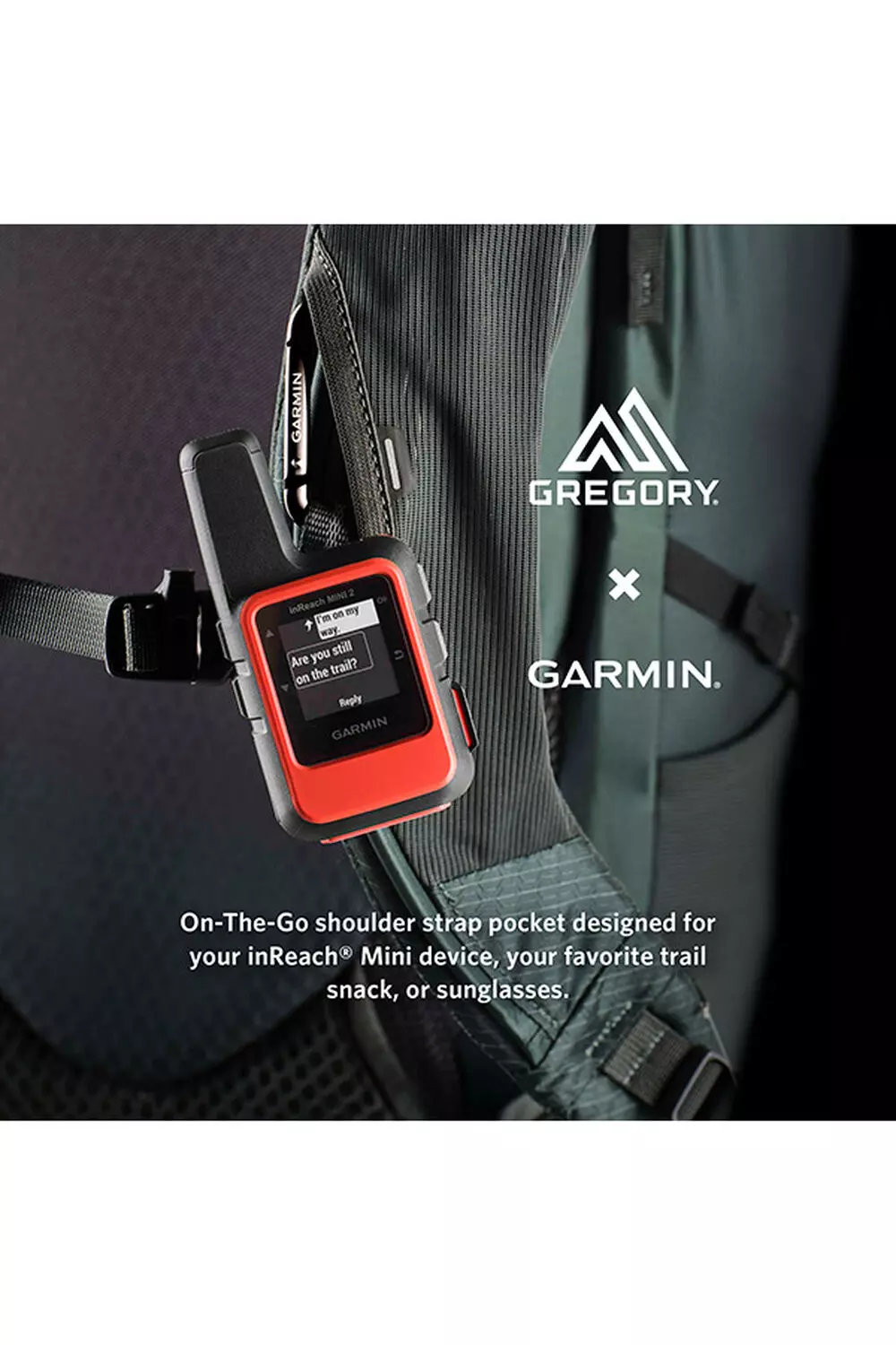 On-The-Go shoulder strap pocket designed for the Garmin inReach®, your favorite trail snack, or sunglasses