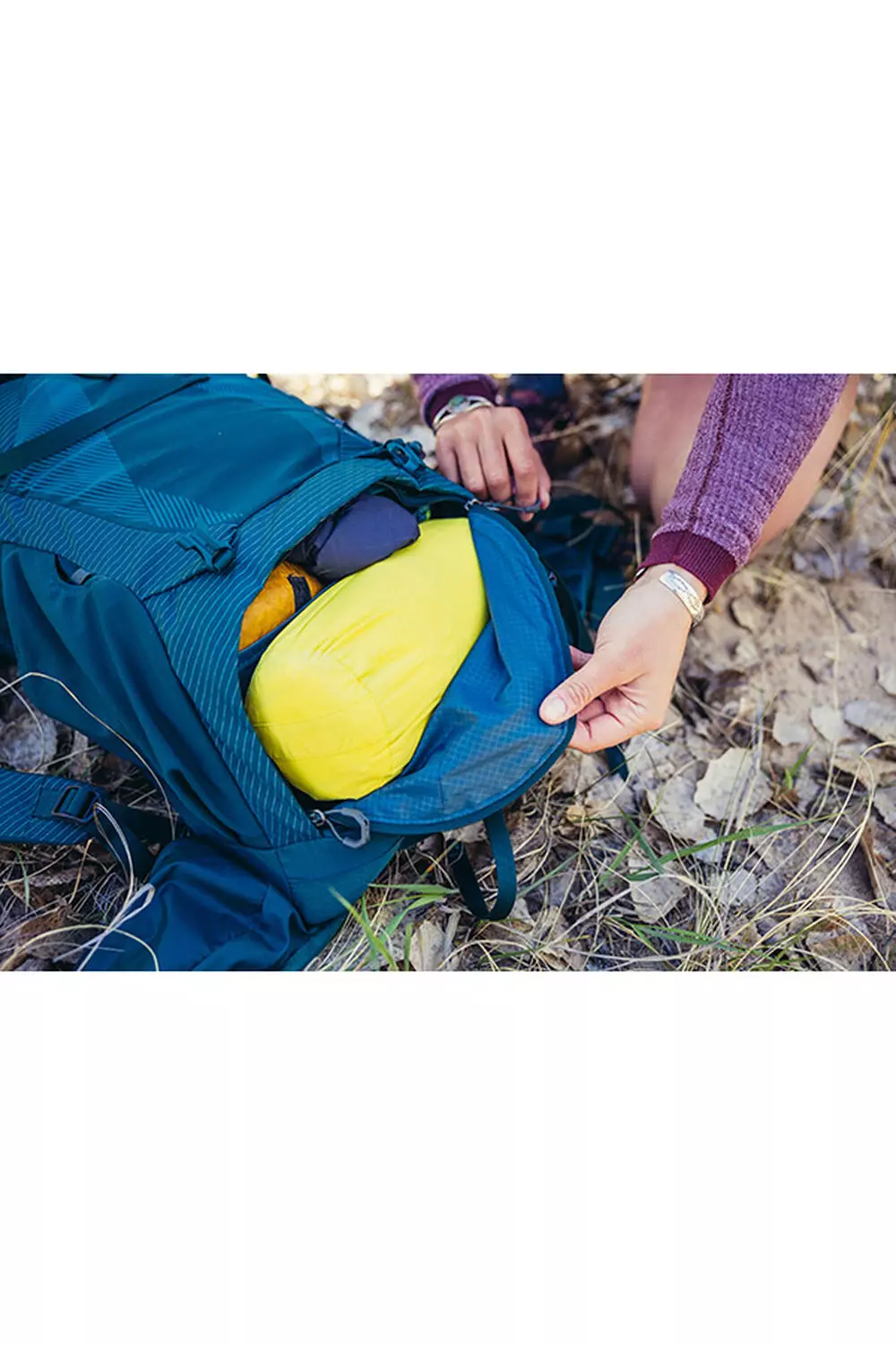 Zippered bottom sleeping bag compartment with removable divider