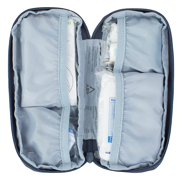 The ABS A.Ssure First Aid Kit is a compact backcountry first aid kit designed for use during ski touring, freeride, backcountry skiing and other outdoor activities. It fits precisely into compatible ABS avalanche gear or backpack pockets and contains essential medical supplies needed for initial emergency care.