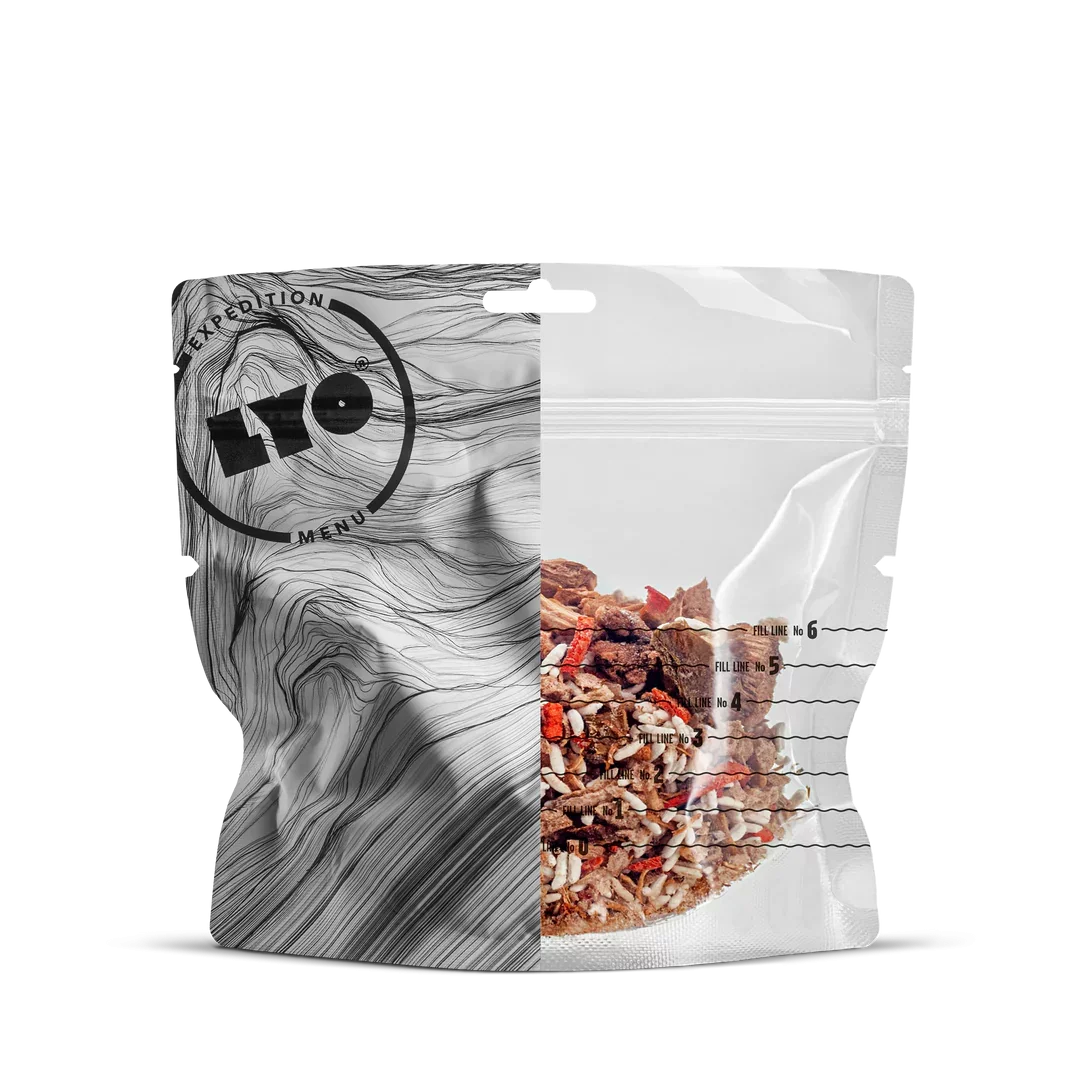 Long shelf life: LYO EXPEDITION meals can be stored for a long time. Since the water content is being removed during the freeze-drying process, microorganisms and enzymes action are inhibited. Each pouch is hermetically sealed and contains an oxygen absorber.
