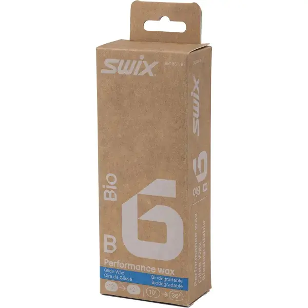 Swix BIO is a versatile glide wax. Bio-B6 covers the typical winter temperatures from -12 °C to +2 °C. It is made from 100% biodegradable raw materials and comes in a 100% recycled plastic box.