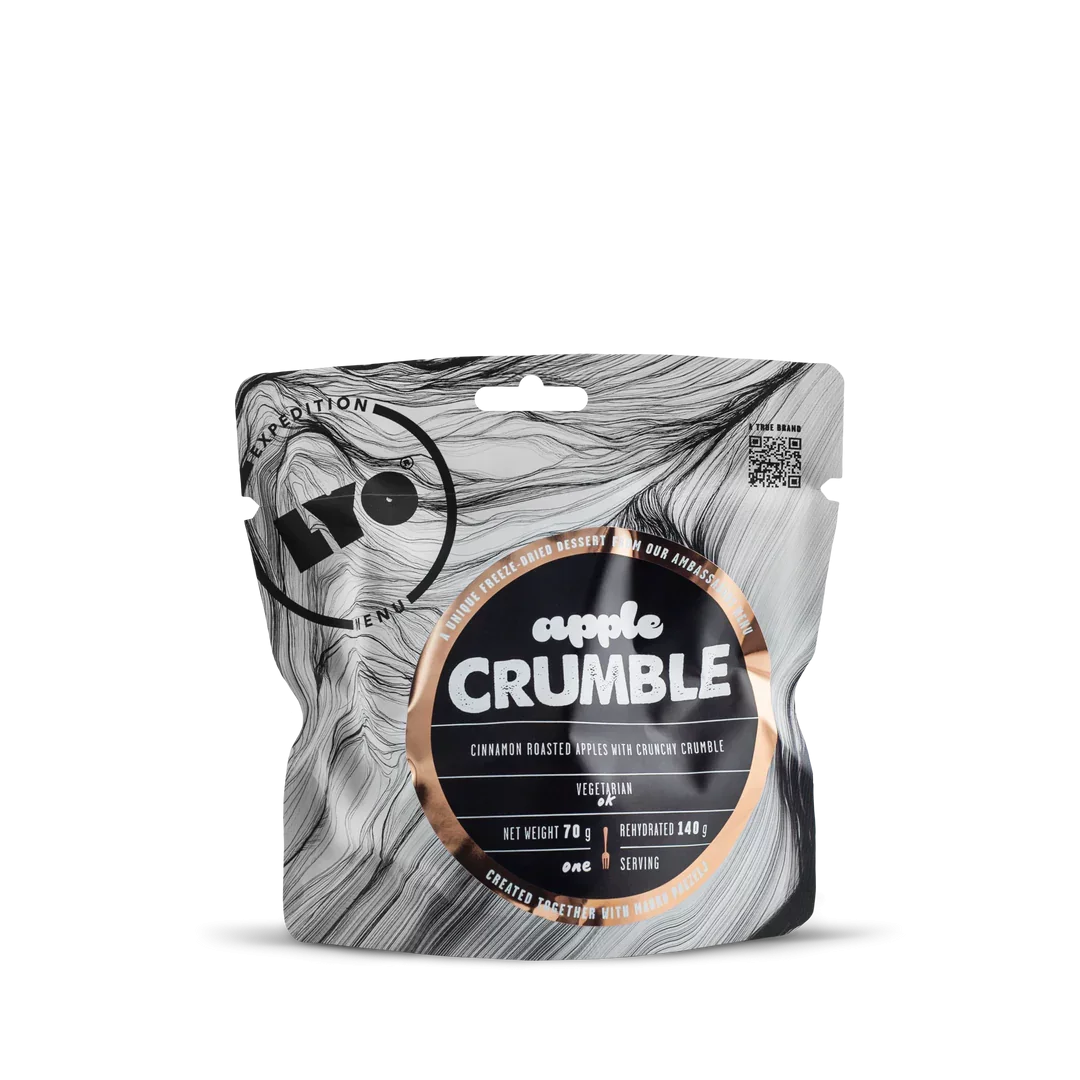 Ябълков пай, но без пай! LYO са вдъхновени да създадат лиофилизиран пай, който да може да се яде навсякъде и по всяко време. Сладки запържени ябълки и хрупкав традиционен хляб за кръмбъл напомнят за времето прекарано с бабите ни. Не е ли страхотно? Препоръчваме да използвате по-малко вода за да постигнете хрупкава консистенция.