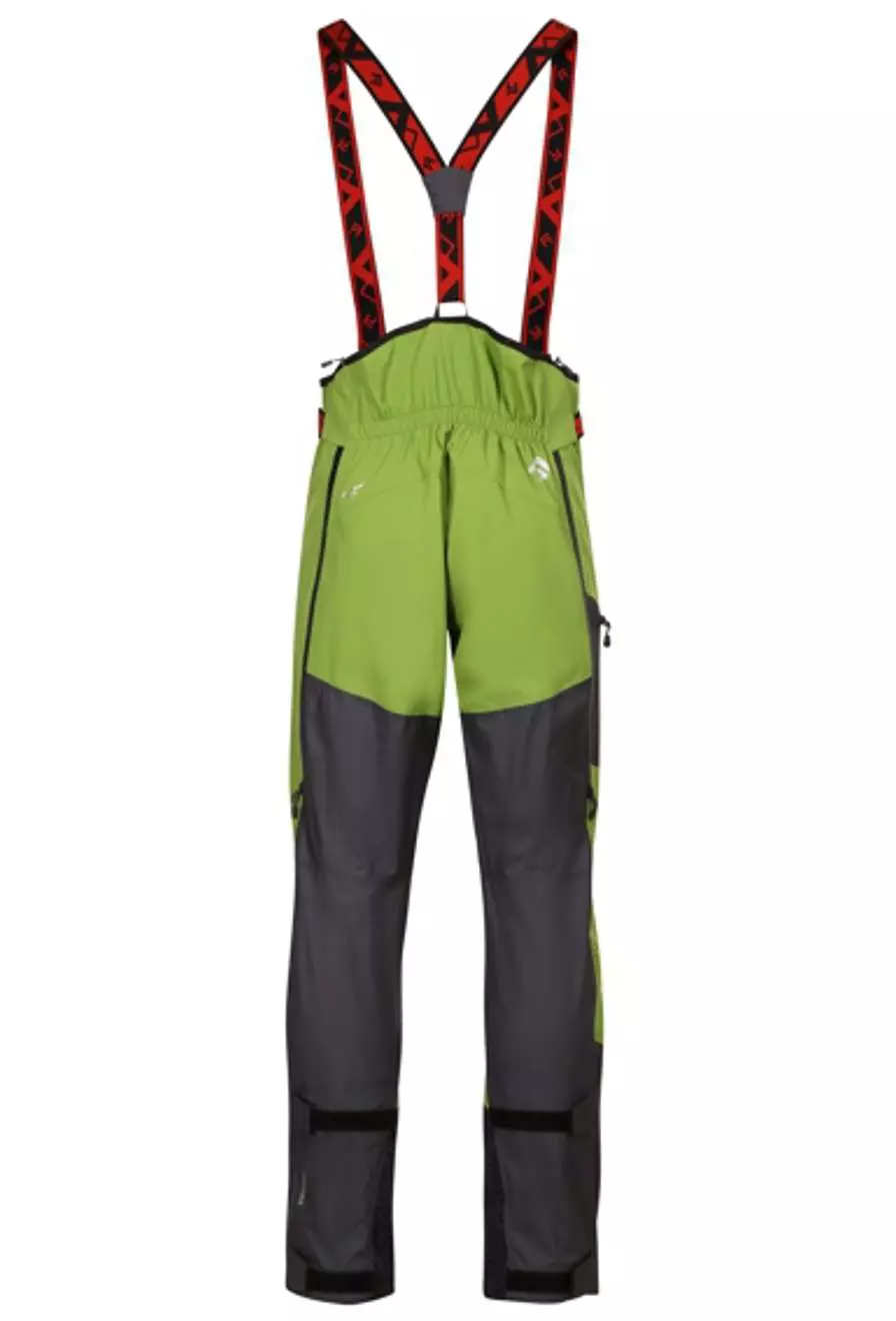 - Подсилката от кевлар от вътрешната страна на долната част на крачолите предпазва от повреди от ръбове на ски, точки на рамо и камъни.